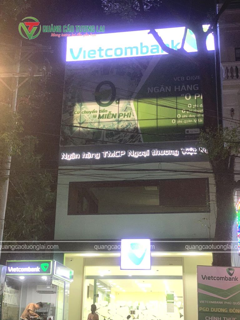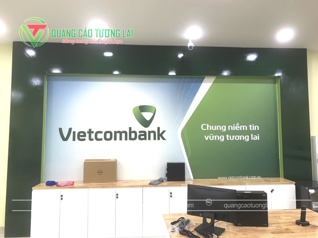 Làm biển quảng cáo, thi công trang chí nội thất cho Vietcombank Dịch vụ thiết kế thi công quảng cáo trọn gói Tương Lai Đơn vị chuyên thiết kế thi công quảng cáo chuyên nghiệp giá rẻ