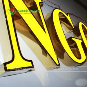 Mẫu chữ quảng cáo mica kết hợp inox gương vàng