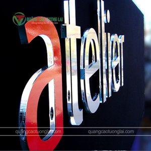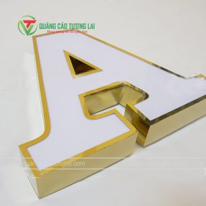 Mẫu chữ quảng cáo sáng chân mica, mặt inox xước