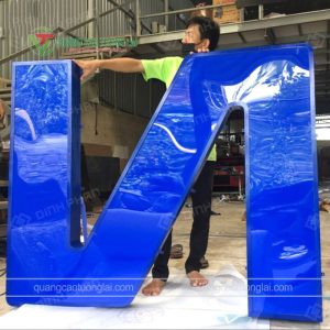 Mẫu chữ quảng cáo sử dụng mặt mica chân quây tole phát sáng