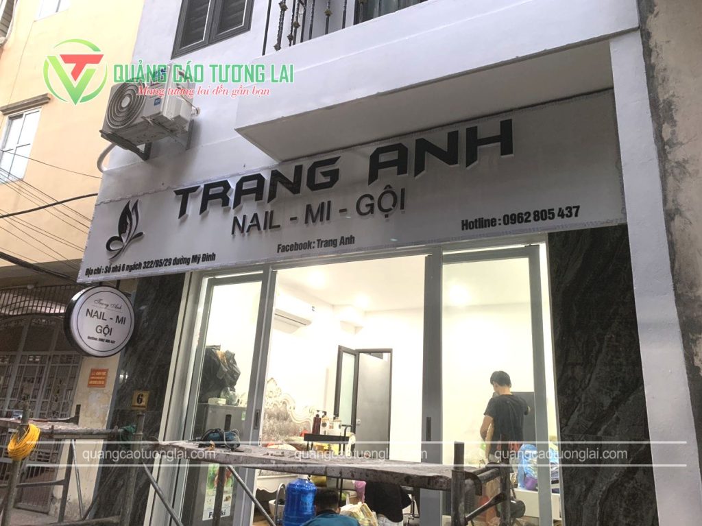 Thiết kế thi công biển chữ hộp cho cửa hàng Nail-Mi-Gội Trang Anh Tương Lai Đơn vị chuyên thiết kế thi công quảng cáo chuyên nghiệp giá rẻ